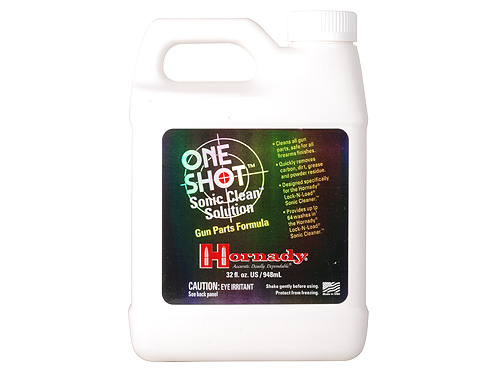 The Hornady One Shot Sonic Clean Ultrasonic Firearm Cleaning Solution is uniquely formulated to gun parts. This ultrasonic cleaning solution quickly removes tarnish, oxidation, and carbon buildup. Designed for the Hornady Sonic Cleaner, this is designed to provide up to 64 washes in the Hornady Lock-N-Load Sonic Cleaner (sold separately).