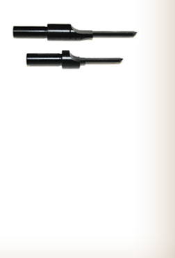 Special blade cuts cleanly without drawing down or splintering wood. Step shoulder countersinks to correct depth in one operation. One drill for fore-end, one for rear.