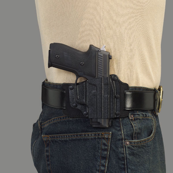 The wide spacing of the 1¾” belt slots pulls the handgun in tight to the body for excellent concealment. The TacSlide’s silhouetted, belt-slide design accommodates multiple barrel lengths on the same basic frame size while simultaneously minimizing overall bulk. The steerhide backplate is smooth where it rides against the wearer’s body, greatly increasing comfort.