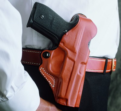 Compact, convenient and lightweight, the Viper® features our thermal molded self-locking polymer paddle that is adjustable for forward to rearward cant. Precise molding and adjustable tension device provide safety and a custom fit. May be worn with or without a belt. Available in black or tan unlined leather.